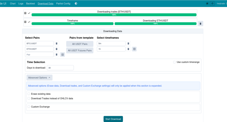 Télécharger les données avec Freqtrade UI