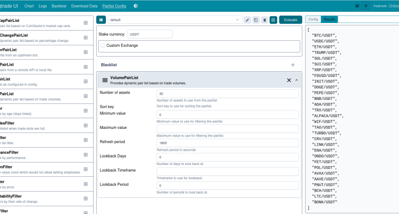 Configurer dynamiquement la Pairlist dans Freqtrade UI