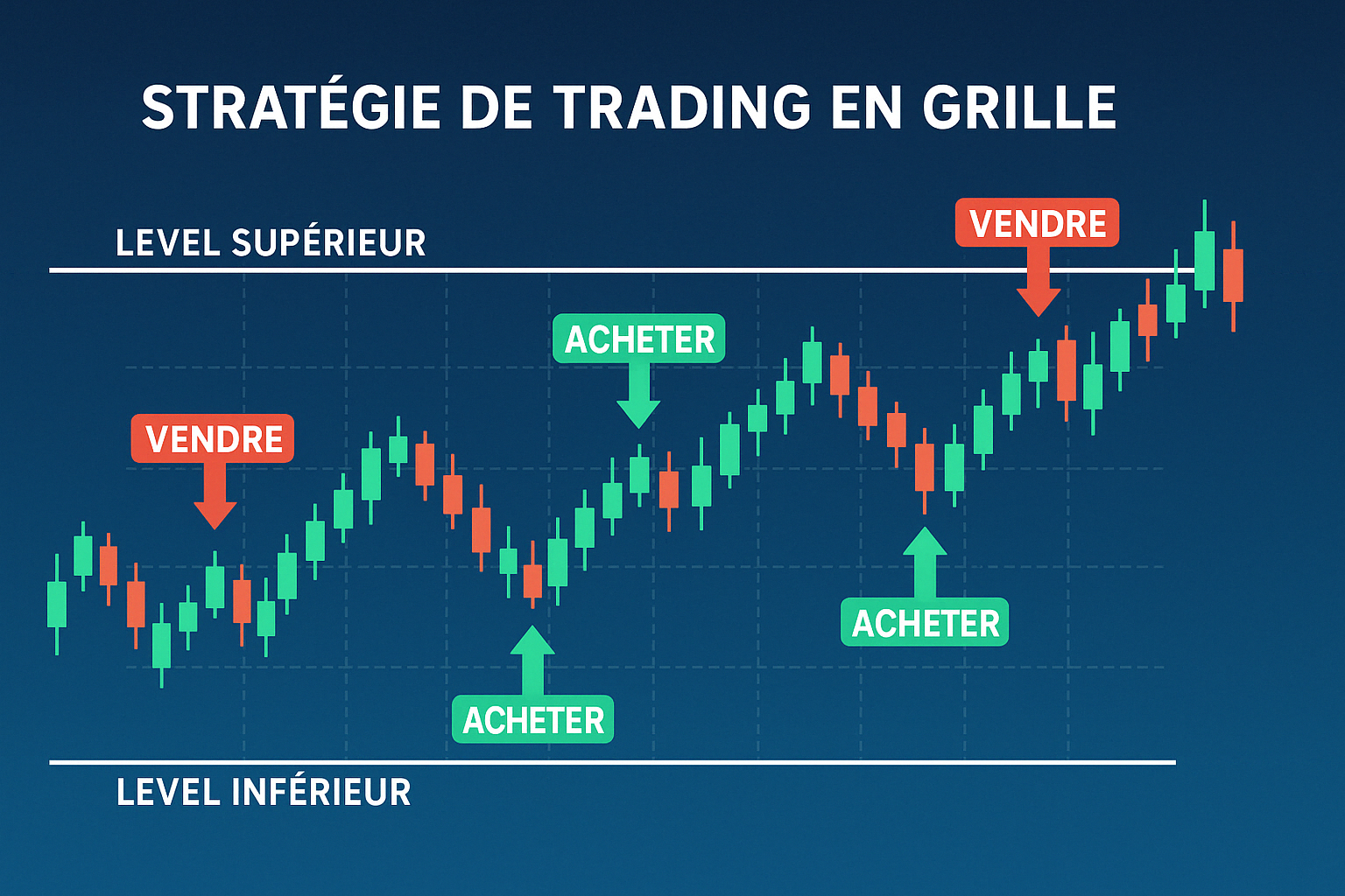 May 24, 2024 0 comments Stratégie de Trading en Grille (Grid Trading) Stratégies de trading Le Grid Trading automatise des achats et ventes espacés sur une grille de prix pour tirer parti de la volatilité sans prédire la tendance.