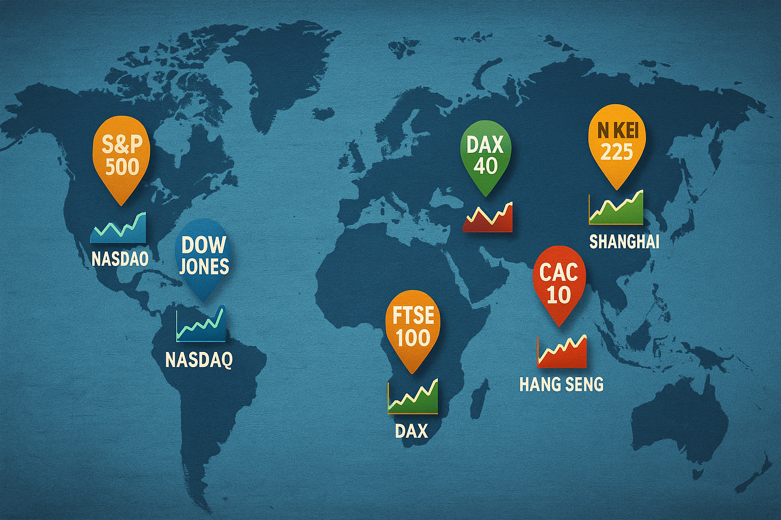 Indices boursiers : paniers d’actions (S&P 500, Dow 30, Nasdaq 100, DAX 40, CAC 40, Nikkei 225…) mesurant la santé d’un marché et tradés via futures, CFD, options ou ETF. Avantages : diversification instantanée, risque idiosyncratique réduit.